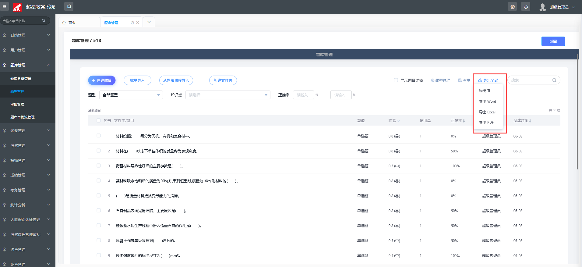 答题纸管理,可以创建空白答题纸,然后去发布考试,支持编辑答题纸名称、复制、删除答题纸。