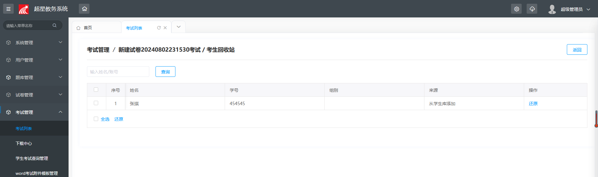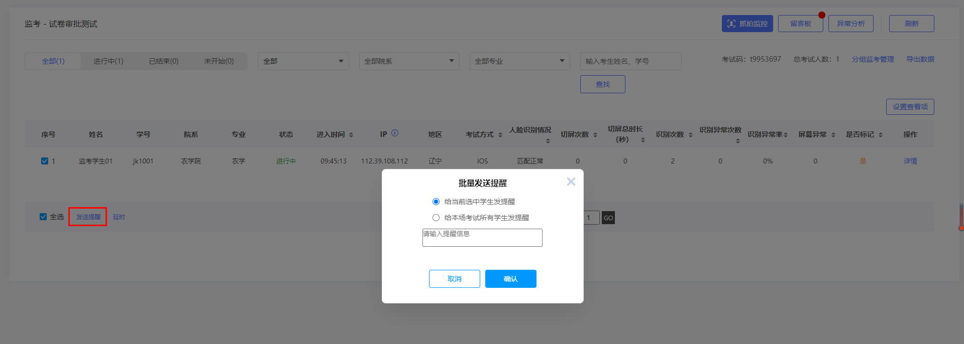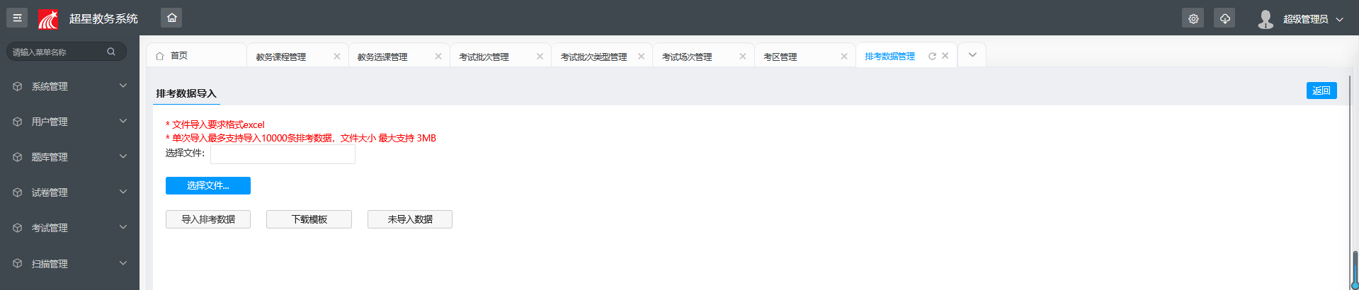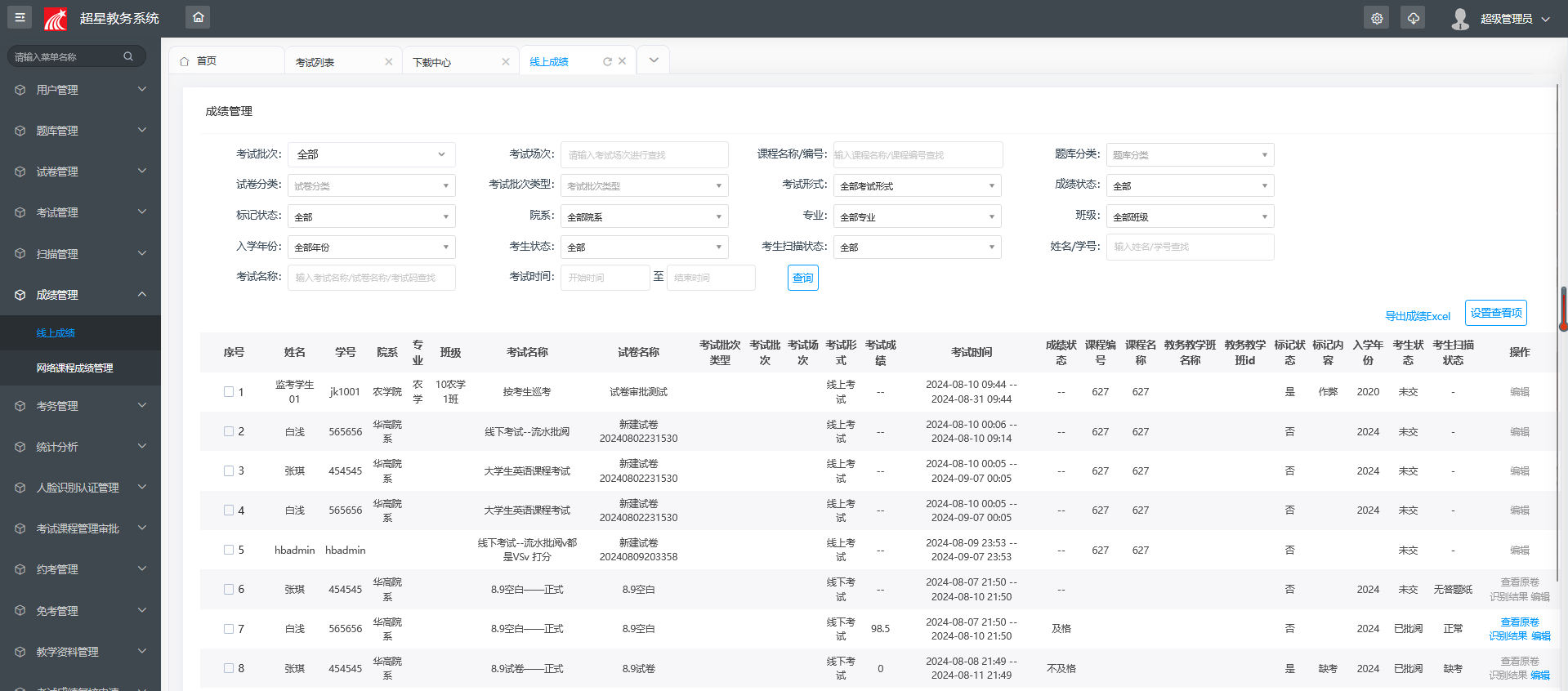 考试异常:一般由于无考试信息或考试信息有误等导致,可人工匹配正确的考试。