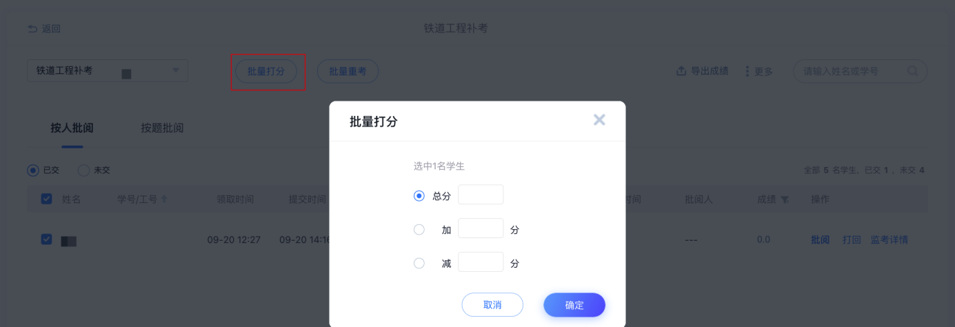 注意:设为缺考、作弊的答题纸支持提交批阅,同时系统会自动标记0分。
