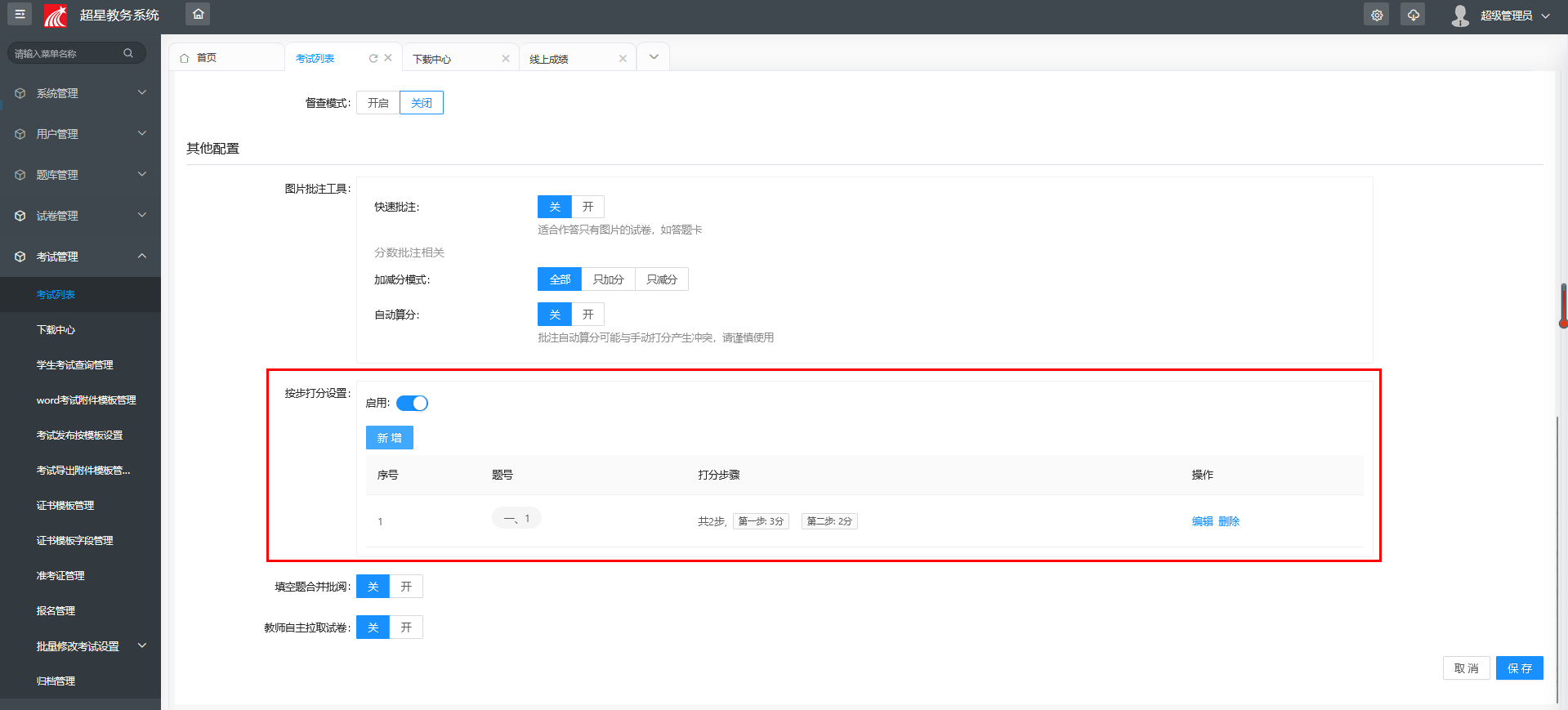 注意:混扫支持试卷管理试卷列表当中下载的答题纸或者是空白答题纸列表当中下载的答题纸,它上面只包含了这个答题纸和试卷的信息,没有包含考试的信息,所以还需要在扫描之前新增一个选择考试的动作。