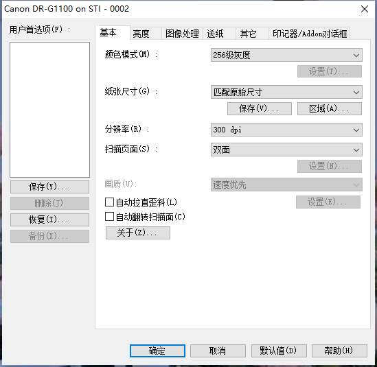 高分辨率、彩色扫描的图像大,大批量扫描前请确认内存空间,无特殊要求可设置【200dpi】、【灰色扫描】。